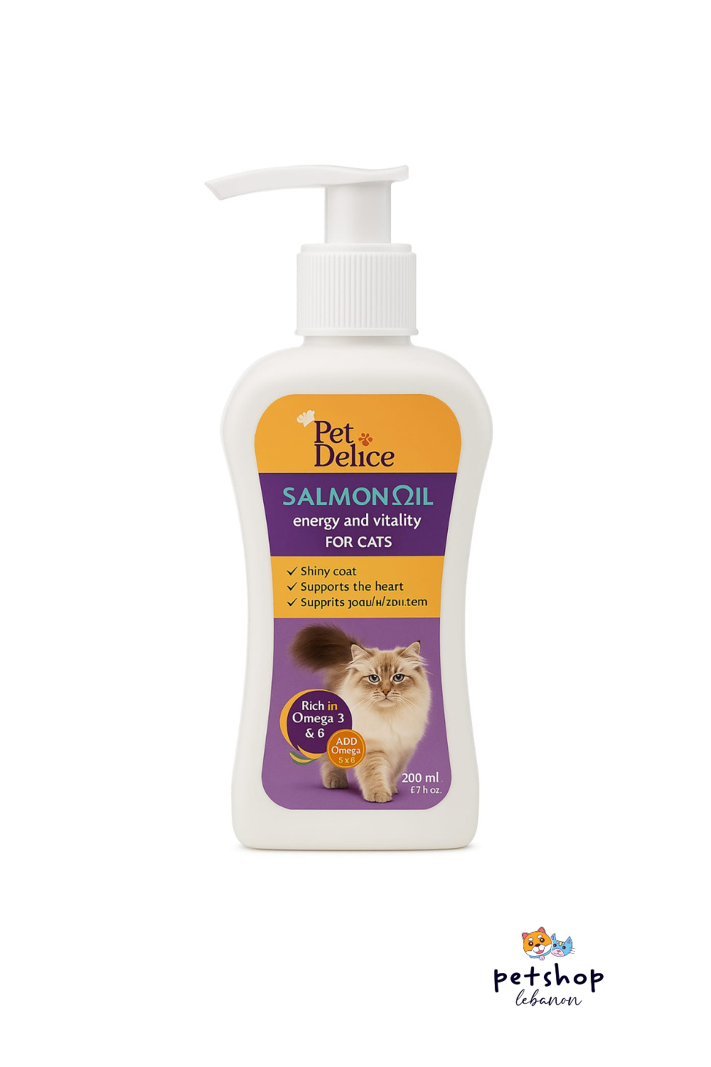 Pet Delice Salmon Oil is a natural dietary supplement formulated specifically for cats. Sourced from sustainable fisheries, it is rich in Omega 3 and 6 fatty acids, along with essential vitamins like A, D3, and E. This powerful blend supports cardiovascular function, joint mobility, and a shiny, healthy coat. Ideal for adult cats, pregnant cats, and kittens, it enhances energy and vitality, while promoting overall well-being.