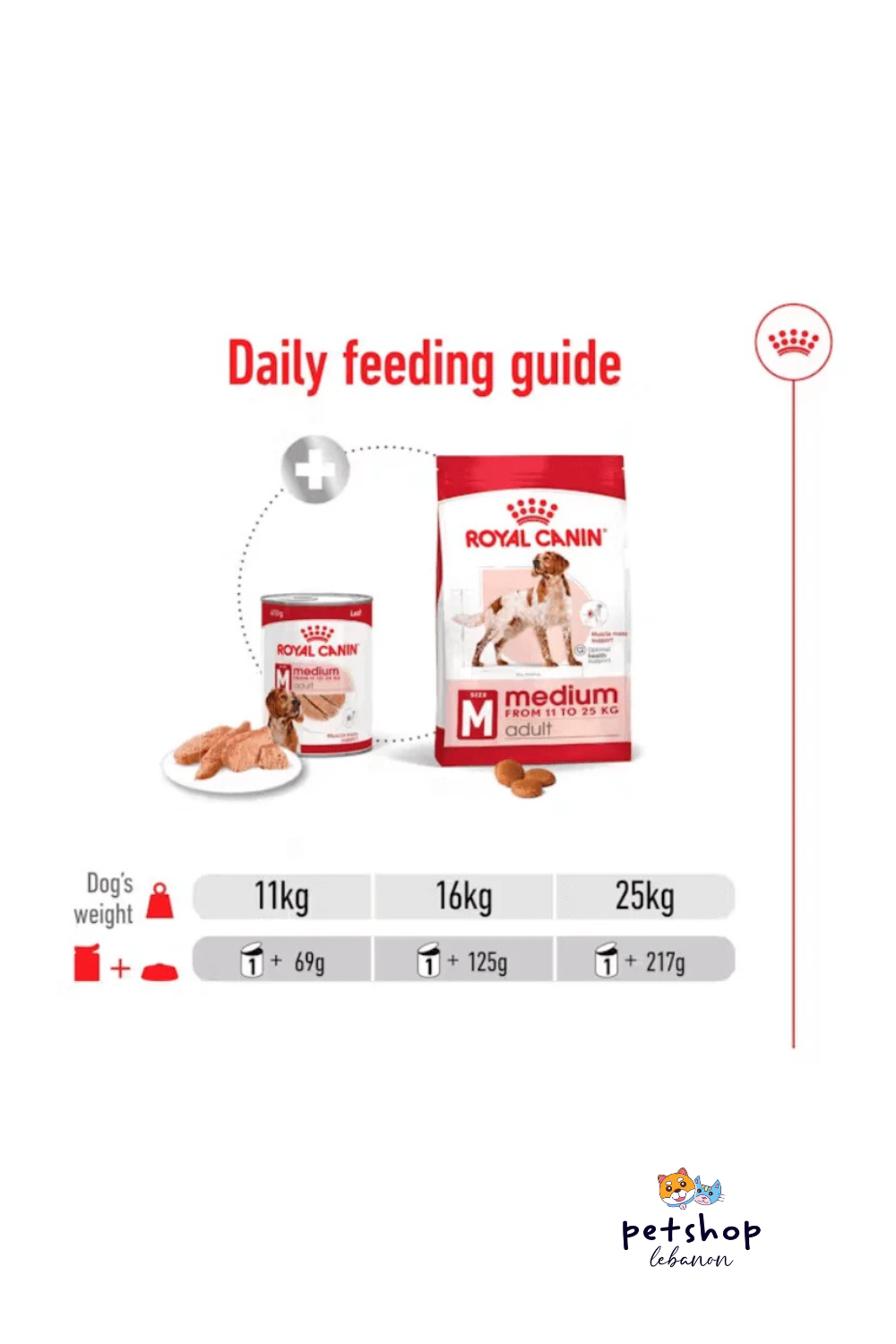 For medium adult dogs (weight between 11kg – 25kg) over 12 months old.